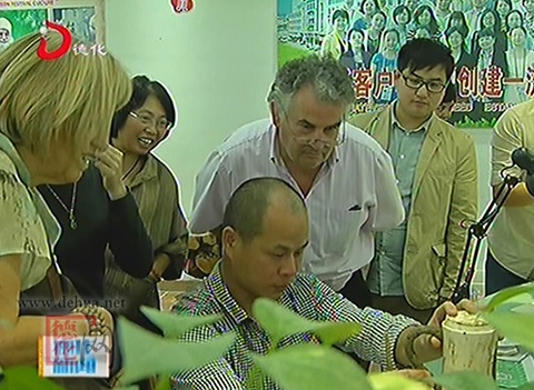 【同期聲 英國(guó)威爾士大學(xué)校長(zhǎng)休斯:我非常高興能夠到這兒來(lái),然后看到這么多的作品,我知道德化的(陶瓷)文化源遠(yuǎn)流長(zhǎng),有千年的歷史,就是我們來(lái)這兒學(xué)習(xí)的話,印象非常深刻,希望將來(lái)能夠(合作),我們大學(xué)能夠跟這邊合作,能夠把東西方的文化,能夠通過(guò)兩個(gè)大學(xué)的交流,把兩個(gè)民族的文化促進(jìn)帶動(dòng)起來(lái)!