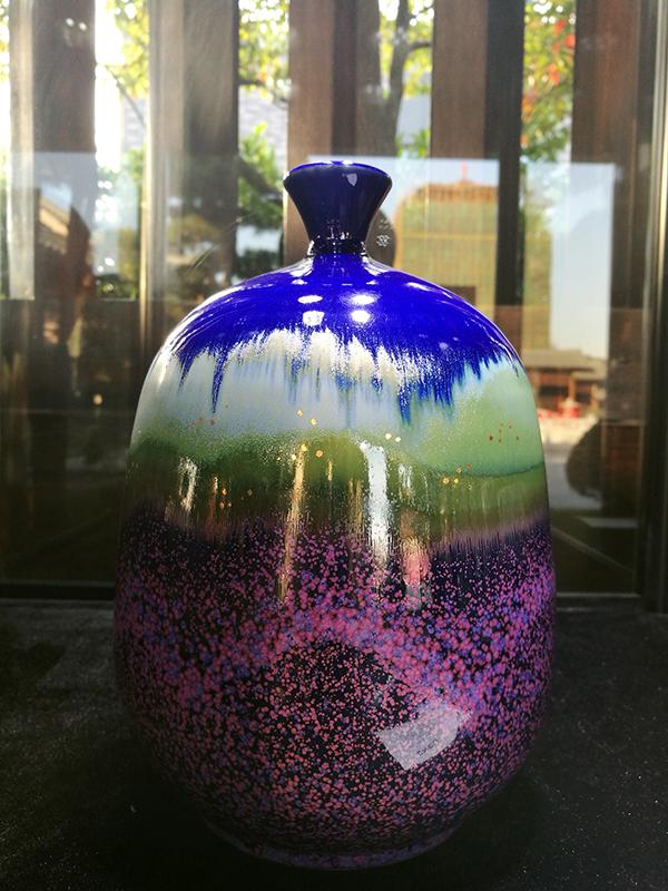黃玉英將一片薰衣草花海燒制到了瓷瓶上