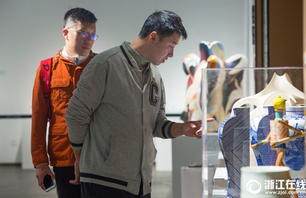 浙江在線11月8日訊(浙江在線記者 張孫超 阮西內(nèi) 拍友 奕婷婷)近日,杭州南宋御街上有個(gè)展覽刷爆了朋友圈,參觀者紛紛稱奇。展覽展出的是京畿陶瓷雙年展國(guó)際競(jìng)賽獲獎(jiǎng)作品和韓國(guó)陶瓷財(cái)團(tuán)收藏的共16個(gè)國(guó)家的陶瓷藝術(shù)品。最具特色的是加拿大藝術(shù)家萊文的“偽皮夾克”,不少參觀者都被這件以假亂真的陶瓷欺騙了眼睛。除此之外,還有2.4米的書(shū)堆,能看不能用的壺等離奇古怪的作品。幾乎所有作品都丟掉了傳統(tǒng)工藝的包袱。