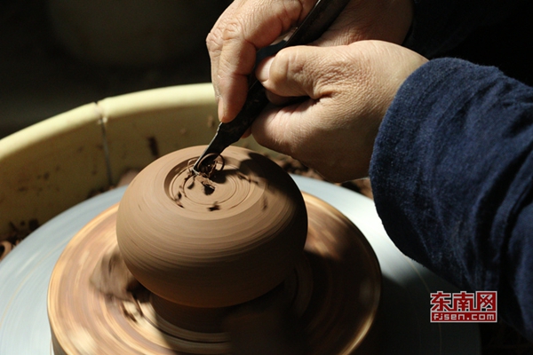 李為成20年前就在瓷廠里幫忙燒窯,柴窯、電窯都燒過,同時還學(xué)做雕塑。他平時負(fù)責(zé)手拉坯,妻子林雪梅則干些手捏裝飾等精細(xì)活兒。夫妻倆要緊鑼密鼓地忙上一兩個月,才能做成一窯的坯體。