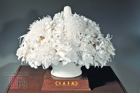 后來與瓷花工藝結(jié)緣,是因?yàn)橐患@得金獎(jiǎng)的陶藝作品《孔雀開屏》,作品中孔雀的羽毛看上去真假難辨,如此微妙精細(xì)的工藝一下子吸引了鄭燕婷的注意,于是鄭燕婷白天在廠里做瓷觀音,晚上就在家里鉆研捏弄瓷花。時(shí)光飛逝,當(dāng)年那個(gè)還懵懵懂懂的她,現(xiàn)在因?yàn)槌錾袢牖笾拼苫ǖ募妓嚕讶怀蔀榈禄伤嚱缂矣鲬魰缘拿餍恰?/p>