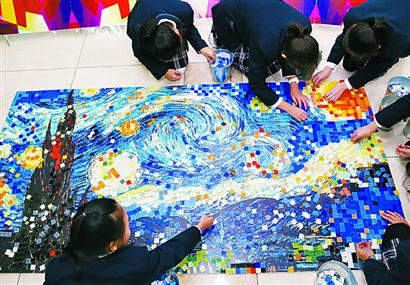 學(xué)生在陶藝文化展示活動上進(jìn)行陶瓷拼貼!∩蹌ζ健z