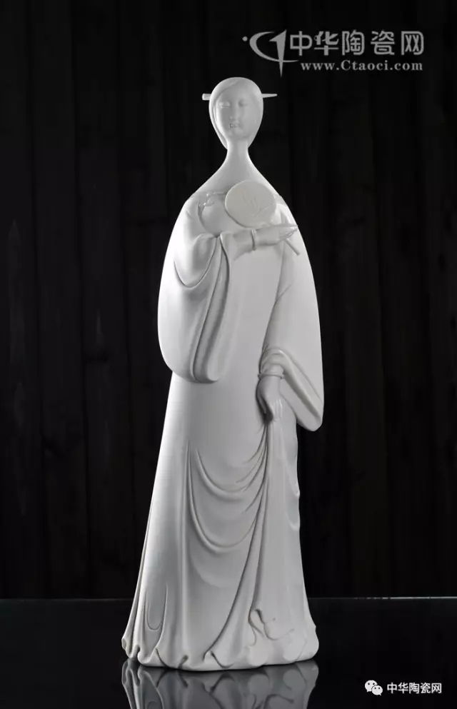 作品《明月》瓷質(zhì)細(xì)膩,胎骨潔白,堅(jiān)實(shí)致密,有凝脂似玉之感,工藝精湛,女子神采婀娜,嬌羞動(dòng)人,如清風(fēng)明月般自然舒心。