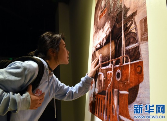 12月8日,一名藝術(shù)愛(ài)好者在欣賞“瓷上版畫(huà)”。新華社記者宋振平攝