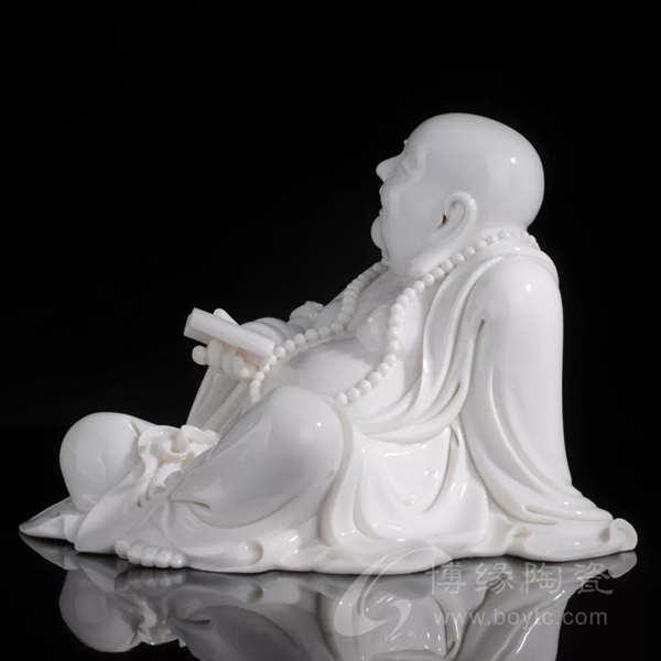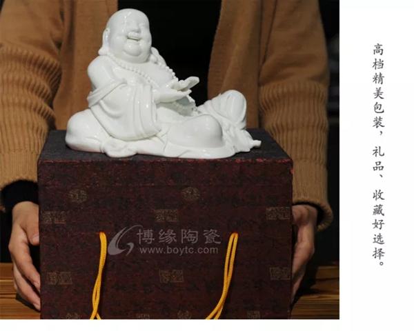 作品《學海無涯》(長寬高23*22*16 cm)由中國青年陶瓷藝術(shù)家柯維太設(shè)計制作,以德化特有的溫潤如玉的“中國白”為胎質(zhì),德化白瓷作品題材新穎獨特,純手工制作,彌勒半靠坐于布袋上,一手捧書,造型精美、細致、可愛又不失高雅,彌勒笑容滿面,神韻逼真,笑意醉人,長耳笑眼,姿態(tài)動人,衣紋線條修長流暢清晰,層次分明,所塑人物性格鮮明, 神態(tài)逼真,是居家,辦公桌,公司,店鋪擺設(shè),有祈福保平安,助學業(yè)進步,生意興隆,財源廣進。