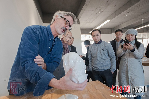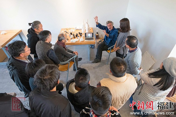 瑞土日內瓦大學陶藝系教授Philippe Barde(菲利普- 巴爾德)向德化青年陶瓷藝術家展示其作品。
