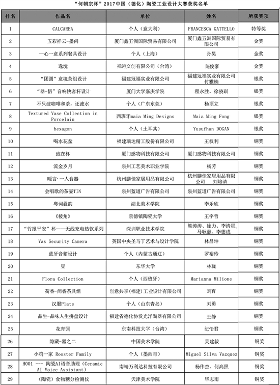 “何朝宗杯”2017中國(德化)陶瓷工業(yè)設計大賽盛典吸引全球設計界目光