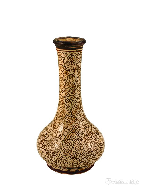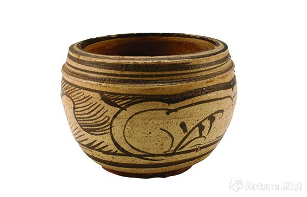 吉州窯與磁州窯所繪紋飾都相似,如折枝紋、牡丹、纏枝蓮、卷草紋、開(kāi)光等。二窯制作工藝都是在已成形的坯胎上用細(xì)黑料繪畫(huà)紋樣。不同的是磁州窯胎體粗糙,需在已成形的坯胎上上一層白色化妝土,再繪畫(huà)所需的紋樣。吉州窯胎體較細(xì)膩,在已成形的胚胎上直接彩繪,后施薄釉。磁州窯的白地黑花釉色漆黑,紋飾線條粗放,吉州窯白地釉下彩呈褐色,紋飾線條纖細(xì),含蓄柔和。