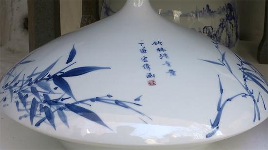 這批青花瓷器是采用景德鎮(zhèn)手工制瓷工藝,并由多位書畫家和企業(yè)名流等提供書畫藍(lán)本燒制而成。圖案有山水、花鳥,各具其妙,瓷胎潔白,瓷釉透明,古色古香,頗具韻味。傳統(tǒng)的燒瓷工藝與傳統(tǒng)書畫藝術(shù)的完美結(jié)合,凸顯出傳統(tǒng)文化的豐富內(nèi)涵。