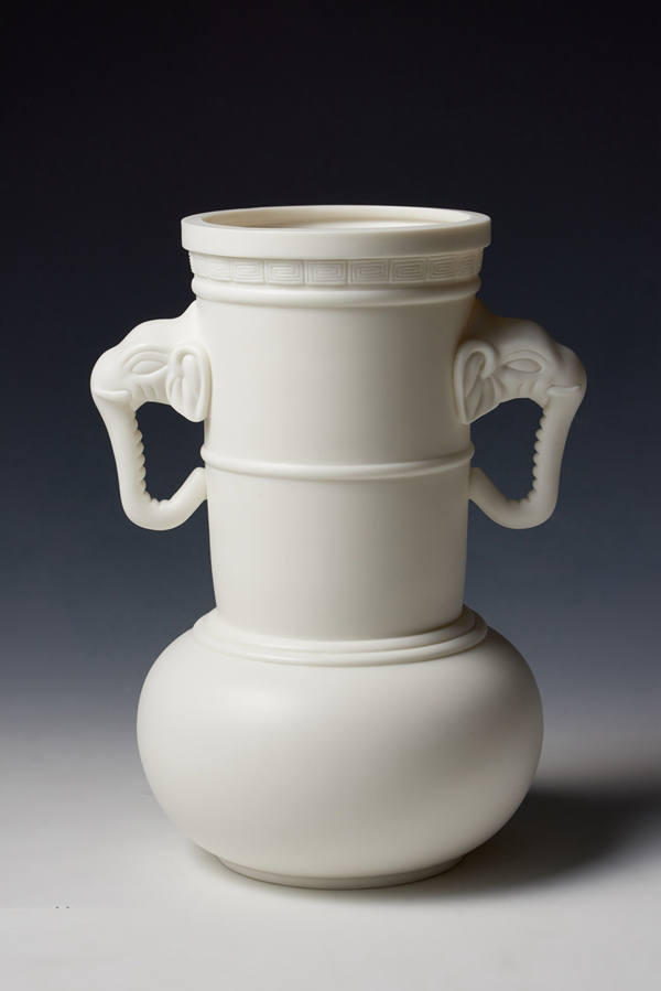 復(fù)制的白釉象耳弦紋尊