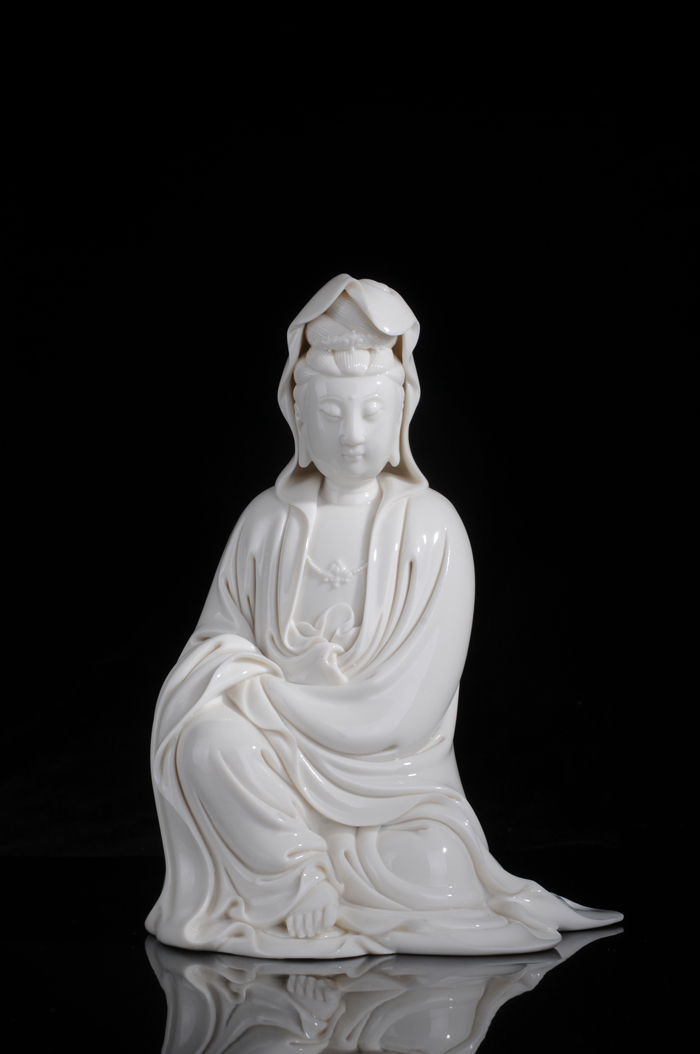 簡介:作品由中國青年陶瓷藝術(shù)家柯維太設(shè)計制作,作品精選上乘德化原礦高嶺土,經(jīng)過嚴格配方加工,觀音面部低首垂目、飽滿豐潤、神情慈祥,似在俯瞰塵世眾生。觀音的珠串、花飾手工捏塑而成,細致逼真,觀音衣紋自然,線條流暢、飄逸,堪稱為一件佳作。