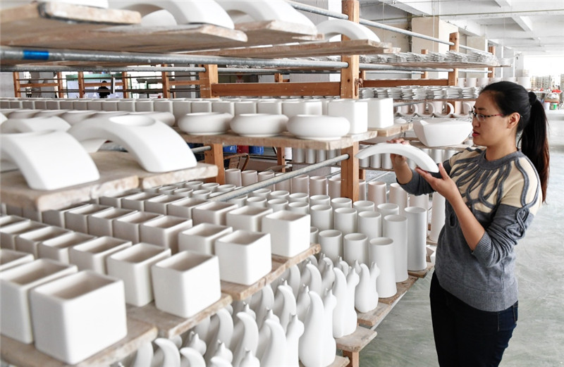 福建省泉州市德化縣是我國(guó)著名的陶瓷生產(chǎn)基地,近年來,該縣陶瓷產(chǎn)業(yè)生產(chǎn)由制造向“智造”轉(zhuǎn)變、產(chǎn)品由低端向高端轉(zhuǎn)變、結(jié)構(gòu)由單一向多元轉(zhuǎn)變,推動(dòng)工藝瓷繼承創(chuàng)新,提升日用瓷的質(zhì)量和品牌,打造具有影響力的現(xiàn)代化陶瓷市場(chǎng)。目前,當(dāng)?shù)負(fù)碛刑沾善髽I(yè)2600多家,從業(yè)人員10萬余人,2017年陶瓷業(yè)產(chǎn)值達(dá)228億元。