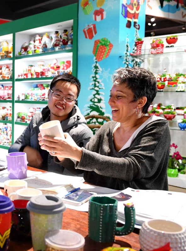 1月20日,一位來自澳大利亞的客商(右)在泉州市德化縣順美陶瓷有限公司采購(gòu)陶瓷產(chǎn)品。