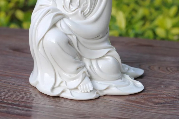 簡介:作品由中國青年陶瓷藝術家柯維太設計制作,作品精選上乘德化原礦高嶺土,經(jīng)過嚴格配方加工,觀音面部低首垂目、飽滿豐潤、神情慈祥,似在俯瞰塵世眾生。觀音的珠串、花飾手工捏塑而成,細致逼真,觀音衣紋自然,線條流暢、飄逸,堪稱為一件佳作。