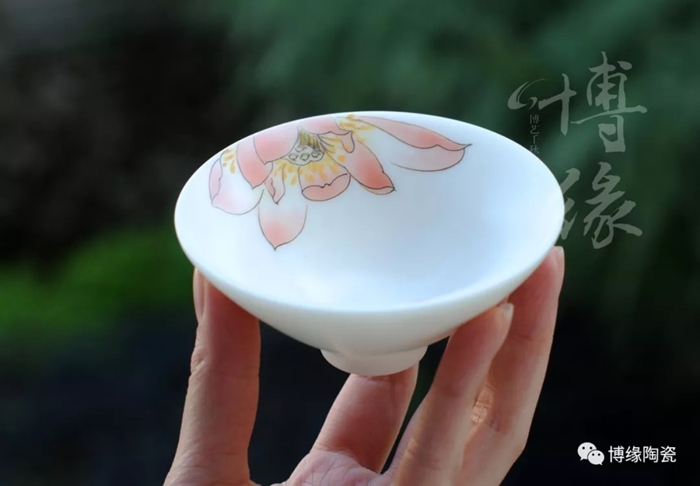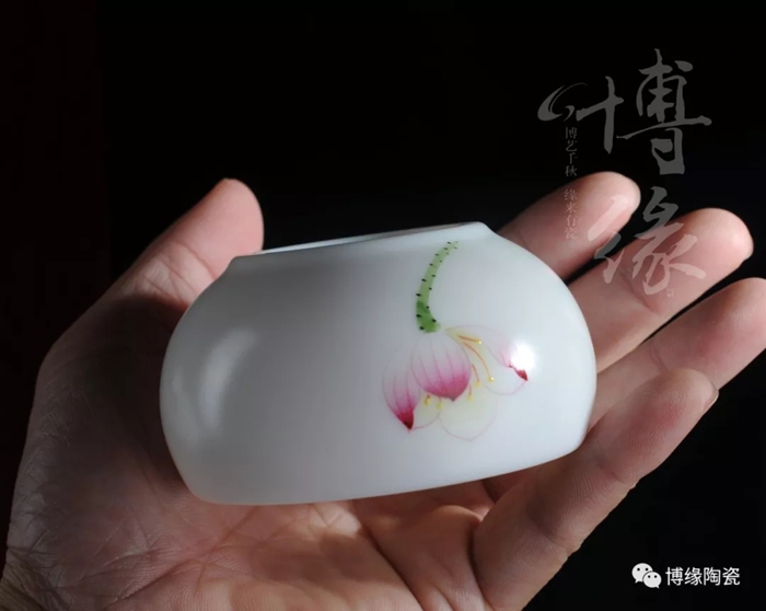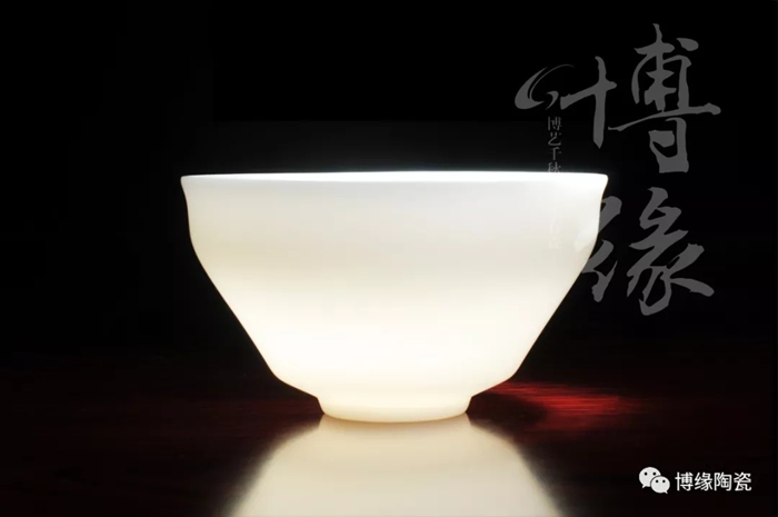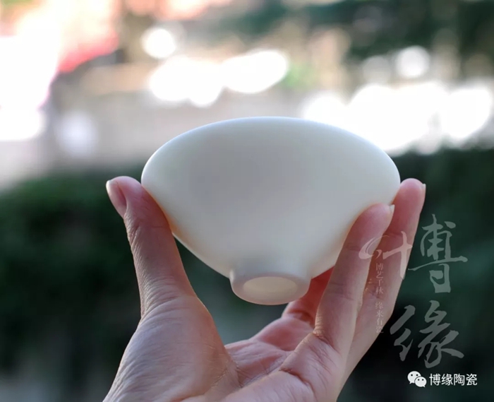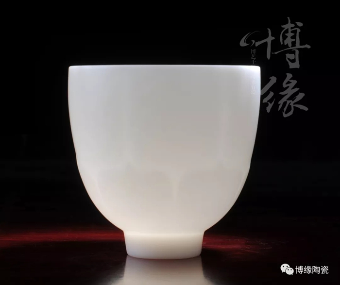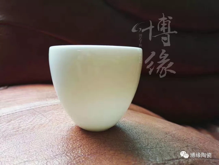 博緣的玉瓷杯,不上釉的玉瓷杯瓷質(zhì)容不得半點瑕疵,是經(jīng)過層層提純挑選出來的,成型率低,因此價格頗高。