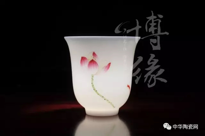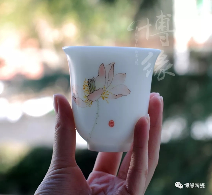 《禪定》手繪荷花玉瓷杯