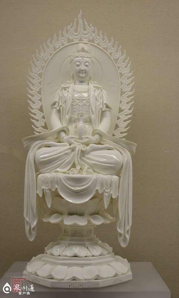 “在新春佳節(jié)來臨之際,舉辦此次高水準(zhǔn)陶瓷精品展,希望海內(nèi)外游客和當(dāng)?shù)厥忻裨诩压?jié)期間可以感受高超的藝術(shù)魅力。”此次展覽策展人徐建勇說,此次展覽定位于德化當(dāng)代國家級(jí)陶瓷大師的經(jīng)典之作,代表了當(dāng)今德化乃至中國陶瓷傳統(tǒng)雕塑創(chuàng)作的最高水平,其中已故中國工藝美術(shù)大師蘇清河《坐荷花觀音》、首屆中國陶瓷藝術(shù)大師楊劍民《哪吒鬧!泛椭袊沾伤囆g(shù)大師許興澤《大毫光觀音》等均為陶瓷藝術(shù)孤品,有的還是首次對(duì)外展示。