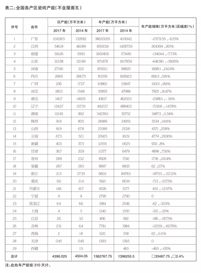 2017年“陶業(yè)長征”調(diào)查結(jié)果表明,我國陶瓷磚產(chǎn)能對(duì)比2014年前后的高峰時(shí)期總體處于下降狀態(tài),產(chǎn)業(yè)洗牌加劇,一些經(jīng)營不善、管理落后的陶企被加速淘汰出局。同時(shí),調(diào)查結(jié)果也顯示,當(dāng)前我國陶瓷磚生產(chǎn)線閑置率處于較高水平,環(huán)保壓力大、用工荒、生產(chǎn)成本高企等成為眾多陶企發(fā)展的重大挑戰(zhàn)。