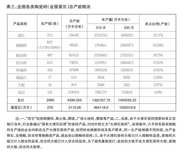 全國各類瓷磚總產(chǎn)能占比