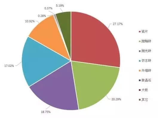 注:圖表中“其他”包括劈開磚、廣場磚、小地磚、耐磨磚、拋晶磚、薄板、陶土板、黑磚等產(chǎn)品。