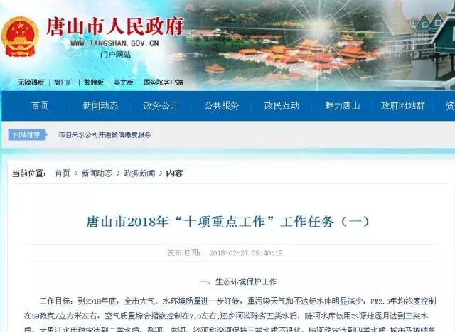 ▲唐山市將生態(tài)環(huán)境保護工作作為2018年的工作重心。