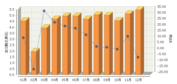 據(jù)海關數(shù)據(jù)顯示,2017年全國陶瓷制餐具行業(yè)累計出口額51.57億美元,同比增長2.94%。從月度出口情況看,全年僅2、12月同比下降,其他月份均正增長;3月份完成出口額3.96億美元,同比增長33.96%,增速為全年單月最高;12月份完成出口額5.48億美元,為全年單月最高出口,但同比下降5.14%。