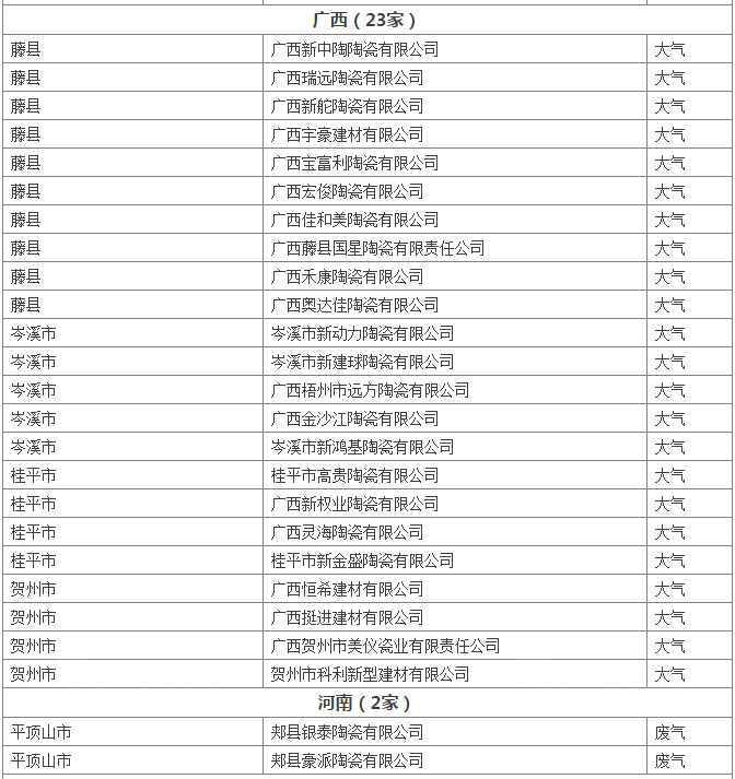 近期,各省市陸續(xù)公布了2018年度重點(diǎn)排污單位名錄,記者統(tǒng)計(jì)發(fā)現(xiàn),目前已經(jīng)有100多家陶企被列入了2018年度重點(diǎn)排污單位名錄,其中廣東江門有15家(資訊|15家陶瓷廠上了2018年江門重點(diǎn)排污單位名錄),四川省有30家(30余家陶企被列入2018四川省重點(diǎn)排污單位名錄),而福建、江西、湖北、廣西、河南、陜西等6省有112家陶企被列入了“2018年度重點(diǎn)排污單位名錄”。