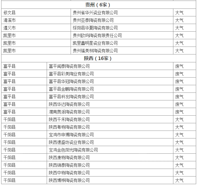 (來源:各地環(huán)保局,陶衛(wèi)網(wǎng)記者整理。由于名單較多,若有失誤,敬請見諒)