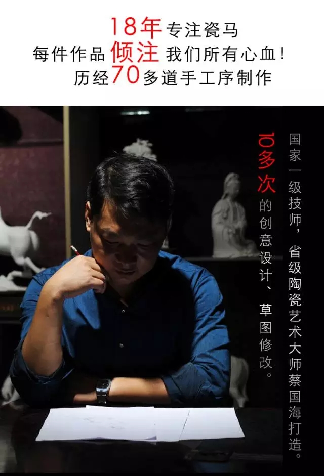 作品是省大師設(shè)計制作,大師18年專注瓷馬,手工白瓷瓷雕匠心打造,其造型非凡獨特,經(jīng)1330多度高溫?zé),燒制難度大,成品率低,作品是家居、辦公室、收藏、鑒賞的好選擇。