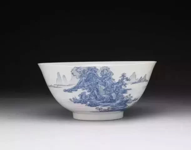 雍正 瓷胎畫(huà)琺瑯?biāo){料山水碗