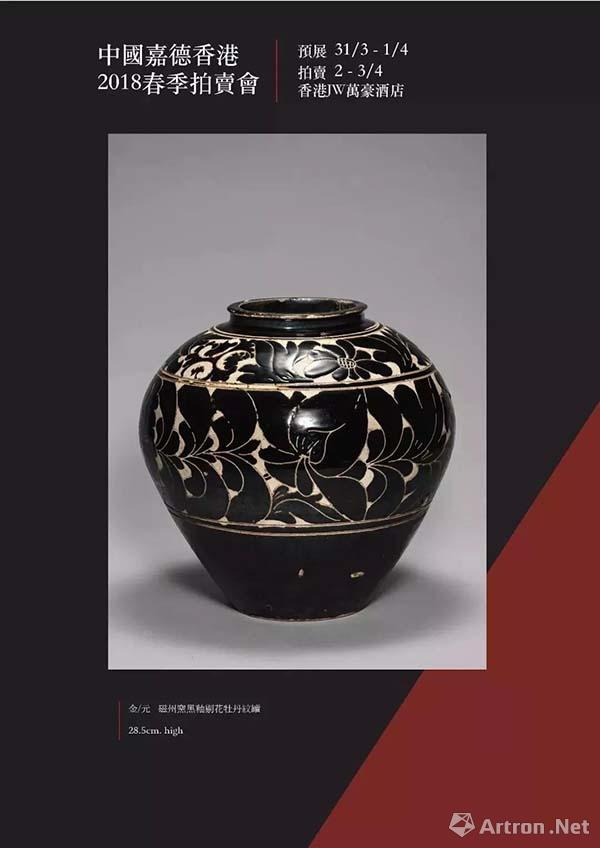Lot 141 金/元 黑釉剔花牡Lot 141 金/元 黑釉剔花牡丹紋罐 28.5 cm 高 估價(jià): HK$ 800,000 - 1,000,000  來(lái)源:香港私人收藏,購(gòu)于1980年代
