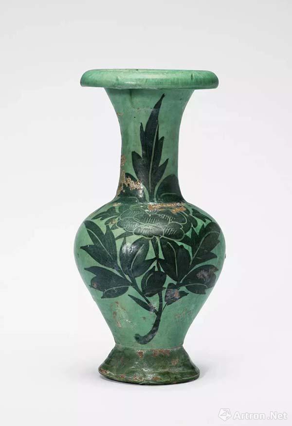 Lot 128 北宋綠釉黑彩牡丹紋撇口瓶 25.5 cm 高 估價(jià): HK$ 1,000,000 - 1,200,000 來(lái)源:香港私人收藏,購(gòu)于1980年代