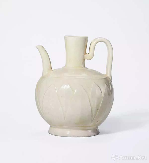 Lot 132 五代/北宋 白釉刻劃卷葉蓮瓣紋執(zhí)壺 18.6 cm 高 估價(jià): HK$ 1,000,000-1,200,000 來(lái)源:1980年5月購(gòu)于日本,附票據(jù)