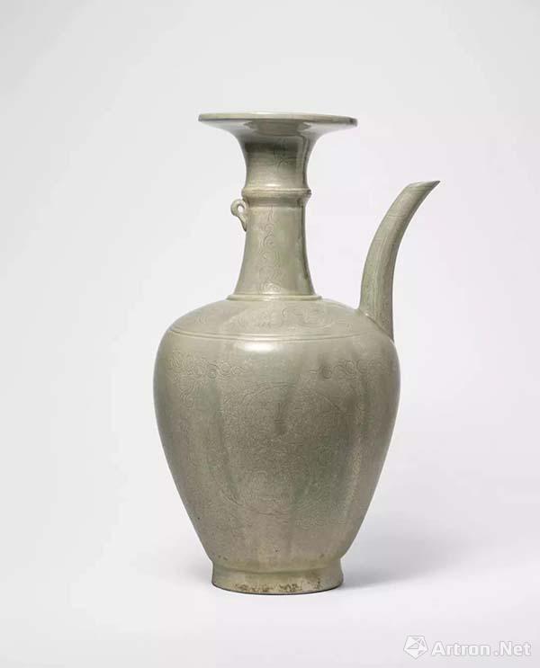 Lot 135 五代/北宋 越窯青釉刻劃花盤口注壺 34cm 高 估價(jià): HK$ 500,000 - 600,000 來(lái)源:臺(tái)灣私人收藏,購(gòu)于1990年代