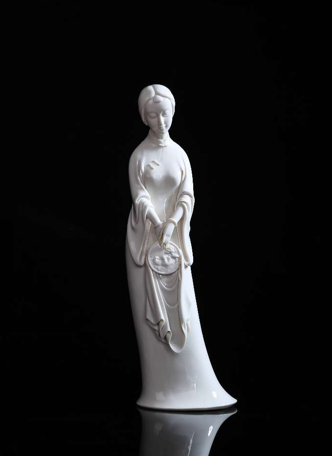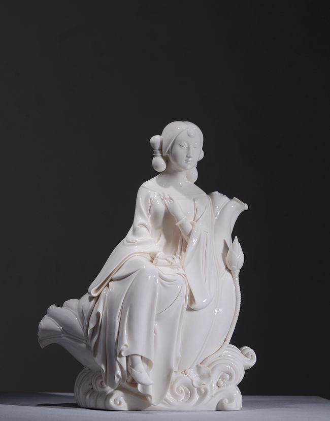 馮美蓮從事陶瓷雕塑二十多年,創(chuàng)作的作品造型優(yōu)美、工藝精巧、風(fēng)格獨(dú)特、形神俱備,無論是神情表達(dá),還是軀干、肌體、手、足,動(dòng)、靜的協(xié)調(diào)刻畫,多能達(dá)到結(jié)構(gòu)合理,層次分明,疏密得體,疏而不簡,密而不繁,繁而不亂,深不傷體,淺有意達(dá),線條流暢,圓潤有力,形如行云流水,衣服邊角的刻畫應(yīng)使之柔潤圓利,輕松飄動(dòng),使裝飾美整體美渾然一體,相得益彰,使人物作品宛然如生,呼之欲出的藝術(shù)效果。許多作品博得客戶喜愛,觀音、彌勒、仕女類作品更受業(yè)界人士贊賞和廣大消費(fèi)者的青睞。創(chuàng)作的作品多次獲獎(jiǎng)。