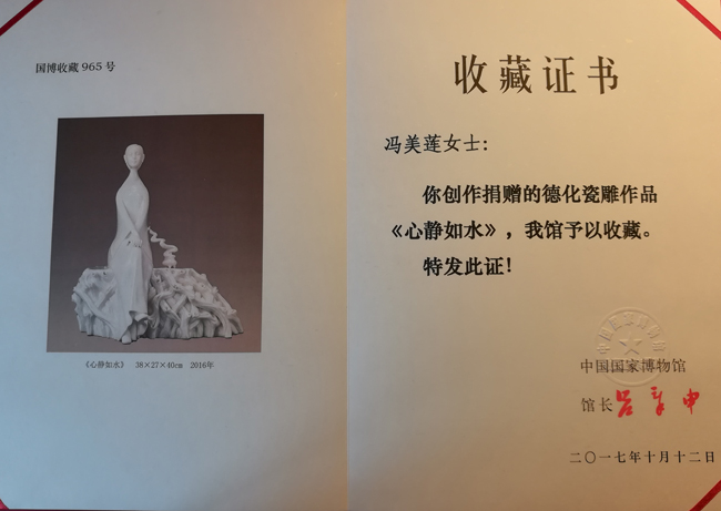 作品《含胎花》《鄉(xiāng)愁》被福建省珍品館收藏,《心靜如水》國家博物館收藏。