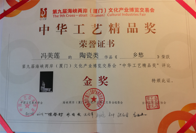 2017年《鄉(xiāng)愁》獲得第九屆福建省工藝美術(shù)精品 "爭艷杯"金獎(jiǎng)