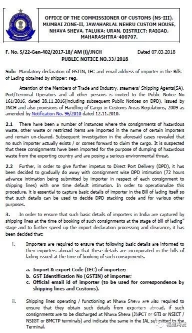2018年4月1日開始,印度海關(guān)將實(shí)施新的通關(guān)要求,外貿(mào)貨代企業(yè)需嚴(yán)格執(zhí)行,否則貨物運(yùn)抵目的港后將無法清關(guān),同時(shí)面臨海關(guān)處罰!