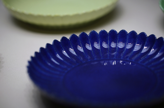 在瓷器史上,單色釉菊瓣盤這樣的作品看上去雖然漂亮但似乎太過直白,如果說(shuō)有很多令人玩味的細(xì)節(jié),則難以想象:既沒有繪畫可以讓畫工展現(xiàn)一只鳥的眼眉,又沒有雕刻可以讓人在米粒大小房間里看到站立的書生,就是干干凈凈的一組盤子,只是顏色各不相同。如果說(shuō)與普通的盤子相比有什么區(qū)別,那就是盤子的外沿是模仿菊花的花瓣,而盤子看起來(lái)便像是一朵朵色彩各異的菊花。