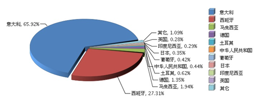 據(jù)海關(guān)數(shù)據(jù)顯示,2017年我國陶瓷磚進口額排在前十位的貿(mào)易國依次是意大利、西班牙、馬來西亞、德國、土耳其、中華人民共和國、葡萄牙、日本、印度尼西亞、英國,其中來自于意大利、西班牙這兩個國家的進口額占我國進口陶瓷磚總額的90%以上:累計自意大利進口8316.71萬美元(同比增長46.92%),占全部進口額的65.92%;西班牙累計3445.31萬美元(同比增長43.94%),占27.31%。 從進口增速看,進口額前十的國家中,來自土耳其、意大利、西班牙、馬來西亞、葡萄牙、印度尼西亞的進口額大幅增長,增速分別為357.68%、46.92%、43.94%、36.27%、30.84%、28.25%(表1),其中土耳其由上年進口額前十之外升至第五。