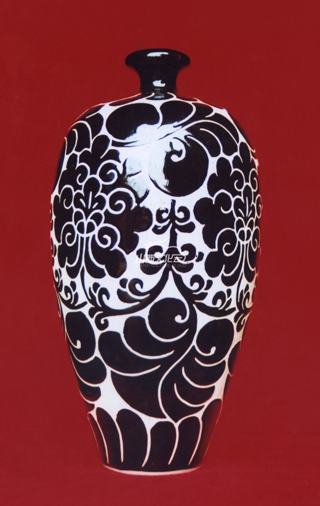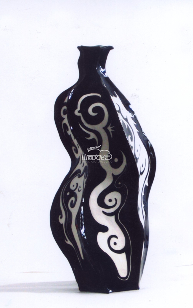 平定黑釉刻花陶瓷采用當?shù)馗邘X粘土經陳腐、除鐵、配料、研磨、蒸空練泥等14道工序制坯,在坯胎未干前以刀代筆刻花,一氣呵成。線條俏麗流暢,形象生動概括。平定黑釉刻花陶瓷采用黑白兩色為主要表現(xiàn)手段,經過特殊燒造、窯變,作品具有一種融材質美、裝飾技巧美、形象簡潔美、造型古樸美于一身的特點。另外,平定刻花瓷迄今仍保留著包括棕釉、白釉、黃釉、仿哥開片釉、窯變釉、剪紙漏花加彩和木葉窯變釉等絕活。