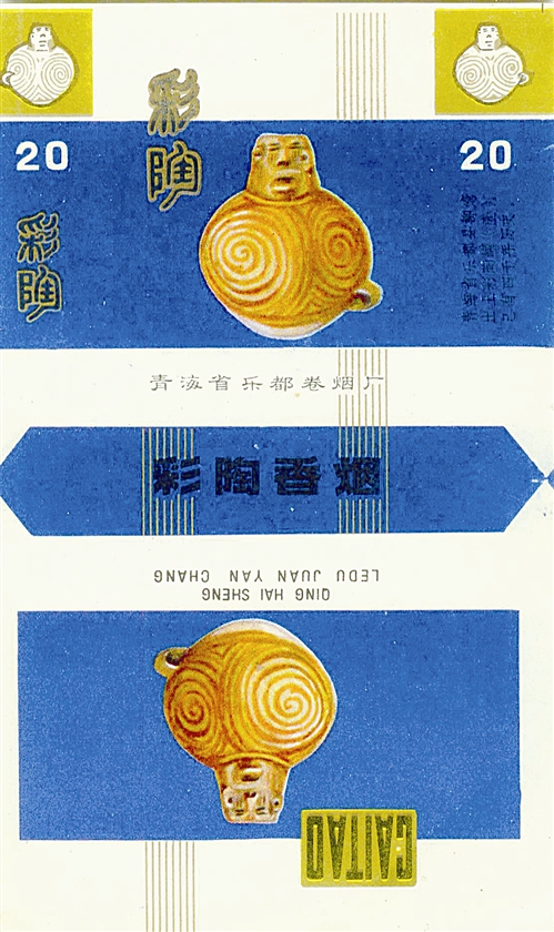 陶器是先民們用粘土或以粘土、長石、石英等為主燒制的日常生活用具,而把器形和優(yōu)美花紋融為一體的彩陶,不僅是制陶工藝發(fā)達的標志,更是古人智慧創(chuàng)造的結(jié)晶。青海省海東市樂都區(qū)柳灣被譽為“彩陶的故鄉(xiāng)”,這里是世界上彩陶出土非常集中的地方,也是迄今我國發(fā)現(xiàn)和發(fā)掘規(guī)模最大的原始社會氏族聚落遺址和墓葬群。從1974年開始歷經(jīng)七年時間,這里共發(fā)掘出土新石器時代彩陶文物17000多件。上世紀七八十年代,青海省樂都卷煙廠出品的“彩陶”煙標(圖①),主版就展示了一只出土于柳灣、距今已有四千多年的人面彩陶罐。