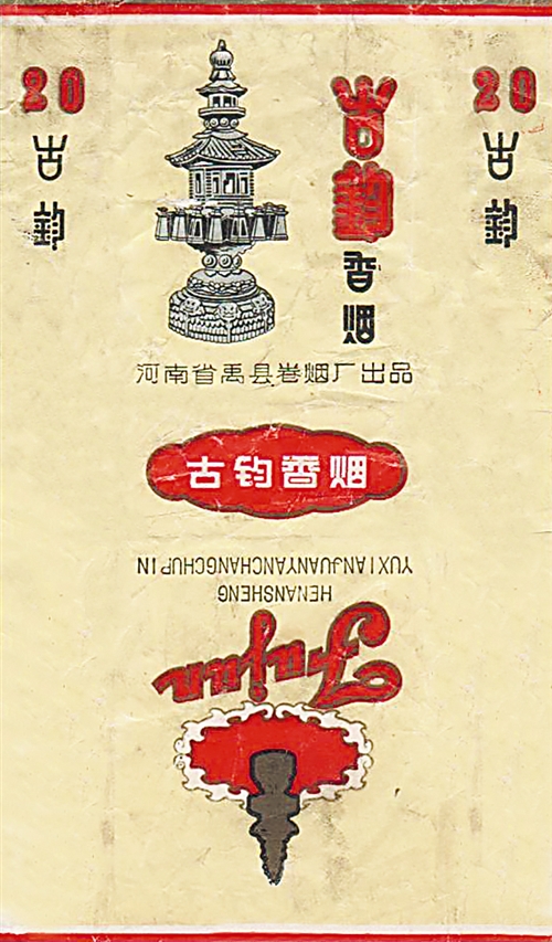 ⑤上世紀70年代河南省禹縣卷煙廠出品的“古鈞”煙標。