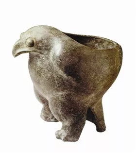 日前去北京參加了一個研討會,順便到國家博物館參觀。一件陶尊(圖1)給我以震撼,使我駐足長觀,久久不愿離去。這件器物高約35.8厘米,整體造型是一只蓄勢待發(fā)的鷹,雙目圓睜,炯炯有神,尖喙成犀利的鉤形,體型圓厚,羽毛豐滿,神情威猛。鷹體為器身,鷹背為器口,鷹尾和鷹足為器足。鷹的身體與尊形渾然一體,構思精巧,無論從正面還是側面觀看,都給人一種美的感覺。這件陶鷹尊體現(xiàn)了藝術性和實用性的完美結合。為了加大器物內(nèi)部容量,鷹的兩條腿塑成中空;為了增加其穩(wěn)定性,將鷹的尾巴搭地,自然形成“三足鼎立”形狀。將酒器尊設計成鷹形,表現(xiàn)出工匠們的聰明才智,實在是新石器時期的一件陶塑與實用器的杰作。我深深嘆服古人高超的制陶技藝和質樸的審美情趣。據(jù)工作人員介紹,1993年北京首次申辦奧運會時,薩馬蘭奇主席曾親自挑選七件能代表中國悠久歷史和燦爛文明的文物,送往洛桑奧林匹克博物館展示,這尊黑陶鷹尊便是7位“文物使者”之一。
