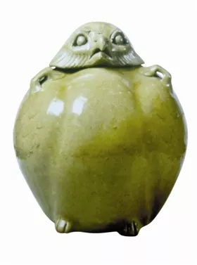 在陶器燒造的過程中,古人悟出了制瓷的方法。從商周創(chuàng)燒出原始青瓷,經(jīng)過工藝的不斷改進,到東漢在南方燒出成熟青瓷,其間經(jīng)歷了一千多年的歷史。蘇州東吳博物館收藏的青瓷鷹尊,專家們認為是三國東吳時期生產(chǎn)的青瓷精品,被文物部門定級為一級甲等國寶級文物。這件鷹尊在六朝青瓷中十分罕見,顯示出魏晉南北朝時期中國青瓷燒造藝術的最高水平,是件難得一見的稀世珍寶。鷹尊通高26.6、底徑13.6厘米。鷹體作器身,鷹頭為器蓋,肩貼四系,肩刻雙翼,兩爪及尾穩(wěn)穩(wěn)著地。釉色瑩潤,青中泛黃,望上去如同一汪春水映碧荷。整個器型顯得十分莊重威嚴。最具匠心的設計是精雕細刻、形象生動的頭部,雙目圓睜,灼灼有神,勾喙銳利,羽毛歷歷。國家博物館的陶鷹尊開口于背,無蓋。而蘇州東吳博物館收藏的青瓷鷹尊,則以鷹頭為蓋?慈オq如穩(wěn)穩(wěn)屹立于高山巖崖之上的一只神鷹,而頭部可時時靈活轉動,傲視宇宙人間。身靜而頭動,更顯大氣、霸氣、王者之氣,可謂青瓷鷹塑神品!
