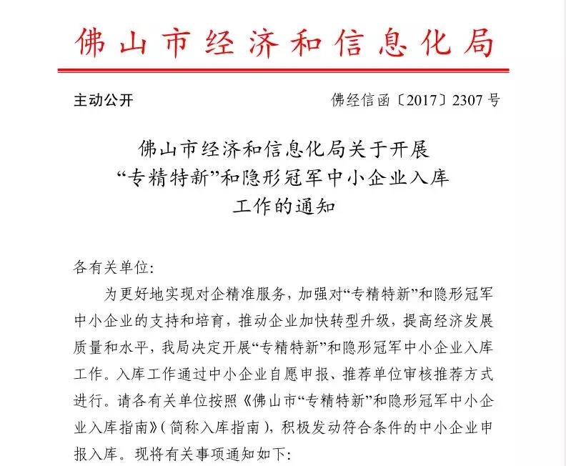 3月20日,佛山經(jīng)信局對(duì)佛山市“專精特新”企業(yè)名單(第一批)進(jìn)行公示,公示時(shí)間2018年3月22日至3月29日(共7日)。