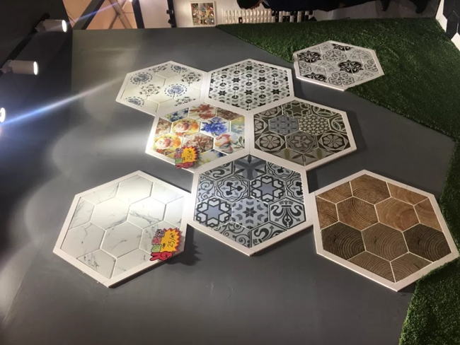 記者看到,德順陶瓷展位主要是地面磚,產(chǎn)品種類(lèi)豐富,有六角磚、小花磚、歐式文藝花磚、現(xiàn)代仿古磚、幾何花磚等等,主要產(chǎn)品70%以上出口到世界各個(gè)國(guó)家,是一家以出口為導(dǎo)向型的企業(yè)。