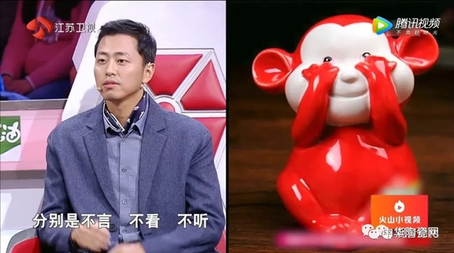 2018年江蘇衛(wèi)視《最強(qiáng)大腦》第九期節(jié)目中,主持人引用世界陶瓷之都·德化瓷雕技師林國(guó)本的《不言,不看,不聽》三只猴子陶瓷作品的創(chuàng)作理念作為解說(shuō)版本。