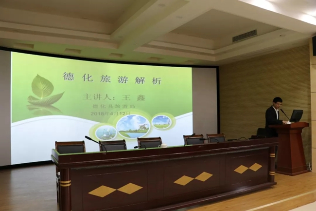 為認(rèn)真貫徹落實(shí)縣委、縣政府有關(guān)全域旅游發(fā)展思路精神,充實(shí)壯大我縣導(dǎo)游、講解員隊(duì)伍,不斷提高我縣講解員業(yè)務(wù)素質(zhì)和整體水平,4月12日,由縣旅游局舉辦的2018年講解員培訓(xùn)班在德化縣職業(yè)技術(shù)學(xué)校舉行。開班儀式由縣旅游局曾局長主持,特邀請了華僑職業(yè)技術(shù)學(xué)校講師、國導(dǎo)證口試評(píng)審員張麗老師以及 陶瓷博物館鄭炯鑫館長進(jìn)行授課。
