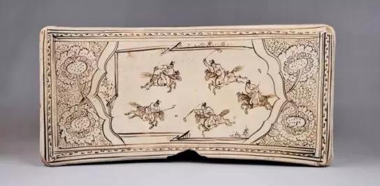 白地黑花“馬球圖”長(zhǎng)方形枕 元代